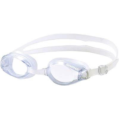 フィットネス、学校体育向けの抗菌クッション付きスイミングゴーグル。装着時に顔に合わせてサイドパーツが上下に可動し、自分が合わせたい位置に収まるのでフィット感抜群。
